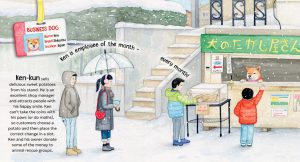 The illustrations are lively, detailed, and informative. I love that in the illustration for the school companion dog which is in a library, one of the books on display is an easily recognisable Dogs with Jobs.