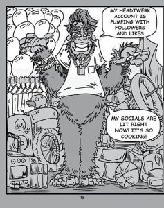 The reader is then introduced to Major Bart Tux from AUS. CRACC who wants to use Ned the nerd to locate the Hairy Holers. Again, this is a very stereotypical version of a Major in a super-secret organisation and his character doesn’t seem to show any depth. Beg (the other part of the Hairy Holers duo) hacks into Red’s social media account and says a lot of mean things to Ned via his social media. Ned and Major Bart Tux return fire with their own insults, but the Major then reveals he’s actually using the conversation and photos Red’s posted to try and locate him. The Major and AUS. CRACC locate Red, and shenanigans ensue.